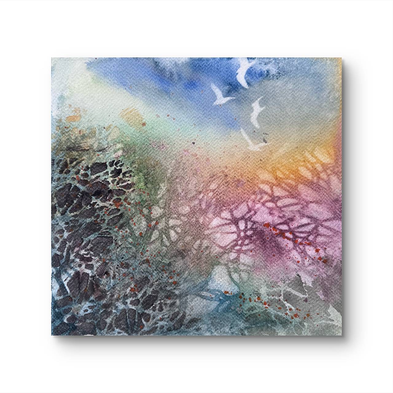 Originál akvarel v abstraktnom štýle. Veľmi rada experimentujem s farbami a nebojím sa nových výziev. Zasielam v tvrdom obale ako list .V prípade záujmu o viacej obrázkov bude doprava zadarmo len mi treba napísať.